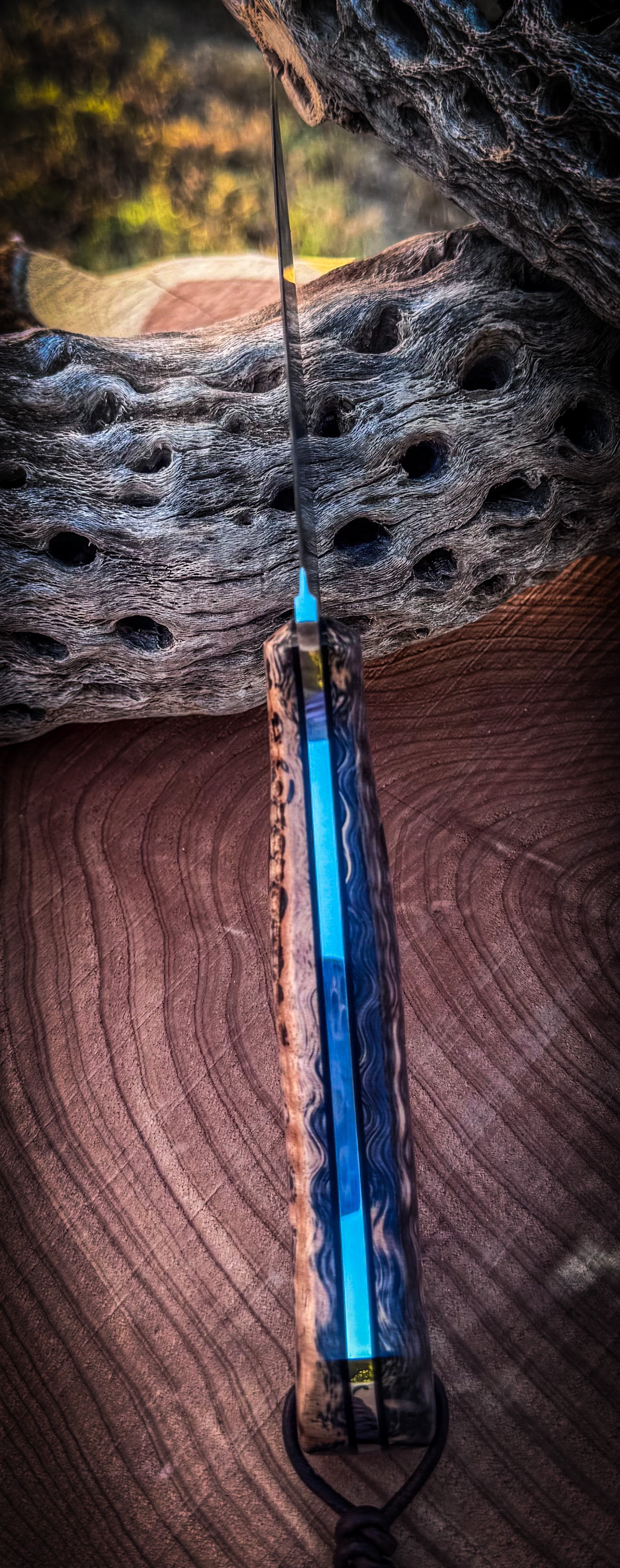 Handles: Stabilized curly mountain ash with black G10 liners.